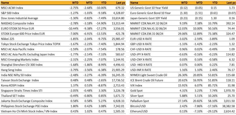 As the war in Ukraine entered its 2nd week, US markets ended the volatile week lower with the Nasdaq Composite down 2.8% and both the S&P 500 and Dow down 1.3%. The intensifying war in spite of ongoing talks between the 2 nations, culled appetite for risk assets. Only energy and utilities held for the week whilst financials and Tech underperformed. Selling intensified after reports earlier that Europe’s largest nuclear power plant was on fire from Russian shelling, reminding investors of the horrors of Chernobyl.