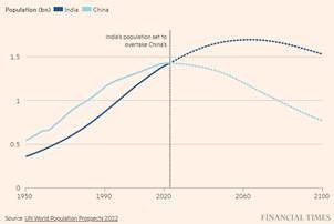 India became the world’s most populous country. With 1.4286 billion people, India now surpasses China’s 1.4257 billion; the US remains a distant third.