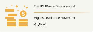 Robust US data and fresh signs of inflationary pressures sent global yields up to new highs. Most notably, the 10yr US Treasury yield rise another +4bps to 4.25%, which is its highest closing level since 2008. Fed futures now pricing in a 45% chance of a further hike by the November meeting.