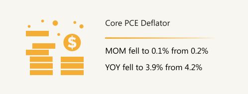 US markets continued its down streak posting its biggest monthly drop of 2023, and the worst quarter since September 2022 on concerns about the Fed Reserve’s policy path in spite of signs of cooling in a key inflation gauge. The Fed’s preferred measure of underlying inflation pressures, the PCE Deflator, rose at the slowest monthly pace since late 2020, while consumer spending edged up. Core PCE Deflator MoM fell to 0.1% from 0.2% (below expectations) and YoY fell to 3.9% from 4.2% (as expected). Headline PCE which includes volatile food & energy prices came in as expected at 3.5% from a revised 3.4% last month. Personal spending and consumption held up although below expectations indicating the consumer continues to spend. US initial jobless claims showed some tightness in the labor market, with the number of new filings edging up slightly to 204,000 last week supporting consumption. However, with the recently expired student loan holiday and rising energy prices, we expect some of this discretionary spending to crimp. NY Fed’s Williams said the central bank is at or near its peak level of interest rates, though policymakers would keep them high for “some time” to bring inflation down to the central bank’s 2% goal – this was the kicker that sent shares lower in the latter half of Friday. Other Fedspeak included Fed Chicago’s President Austan Goolsbee who said policymakers shouldn’t place too much weight on the traditional economic idea that steep job losses are needed to quell inflation, which he said could lead officials to raising rates too high. Richmond’s Barkin said it’s too soon to know if another rate increase will be needed. Other data of interest was the U. of Mich. Inflation expectations which came in as expected at 3.2% and 2.8% for the 1 year and 5-10 year categories respectively, in spite of higher oil prices. The final GDP annualised release came in at 2.1% – no recession just yet perhaps.