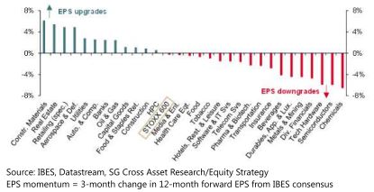 So far, around one quarter of STOXX 600 companies have published their 3Q results and this reporting season is quite similar to 2Q where we see some weakness at the sales level, but with solid profit margins softening the impact on earnings. 4 sectors have benefited from the strong positive EPS revisions over the last 3 months: Construction Materials, Real Estate, Retailing and Aerospace & Defence. At the other end, 3 sectors have seen their forecasts downgraded by consensus: Chemicals, Semiconductors and Technology Hardware & Equipment.