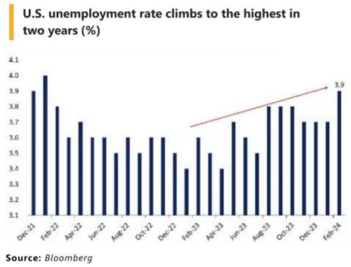 US employment data surpassed expectations in February while wage gains moderated. The unemployment rate rose to 3.9% against views of 3.7% whilst non-farm payrolls reported a higher-than-expected gain of 275k jobs with private payrolls beating expectations. January’s data was revised down. There was a massive downward net revision of the previous 2Months by -165K. Labor for participation was in line with previous month at 62.50% but nevertheless 0.10% below consensus. Average hourly earnings mom printed below consensus at +0.10% but came out in line with consensus on a YoY basis at +4.30%, nevertheless down 0.10% compared to previous month. Average weekly hours came out in line with consensus at 34.3, up 0.10 compared to previous month.