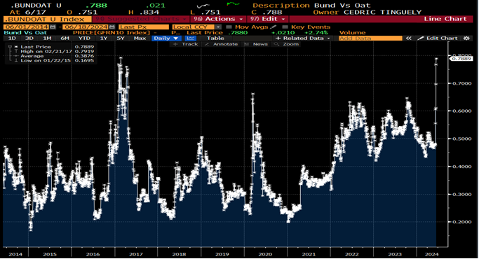 The European Parliament elections delivered a nuanced set of results. In terms of the overall seat distribution, support for centrist parties did not decline much, with mainly the Liberals and Greens losing support. This still puts current European Commission president Ursula in pole position to secure a second term and discussions were already in train to build sufficient support around her candidacy. Interest was focused on national implications, especially France, where President Macron surprisingly calling for a snap election for 30 June and 7 July, given a large swing to the far-right National Rally. The outcome remains uncertain, but there is a significant risk of cohabitation, which would see President Macron face a government led by Marine Le Pen’s NR. This would restrict Macron to the areas of external affairs, defense and justice. Since the announcement, political parties on the left have already agreed to form a coalition (New popular Front) and present single candidacies, with Melechon’s far-left La France insoumise (LFI) obtaining the highest number of constituencies.