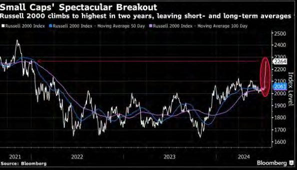 Investors wary about tighter US restrictions on chip sales to China, Biden’s likely exit from the race came amid a rotation into shares of smaller, riskier companies, pushing the Russell 2000 Index 1.7% higher for the week. It rose 6% in the previous week. Optimism about the potential for rate cuts appears to be driving a surge not just in US small caps but also across the pond as well.