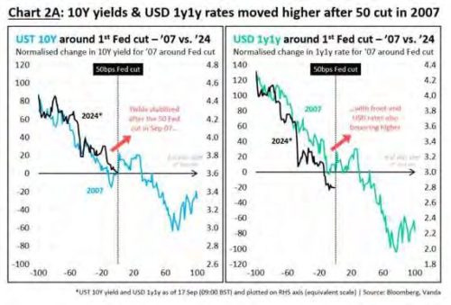 10Y yields & USD 1yly rates moved higher after 50 cut in 2007.