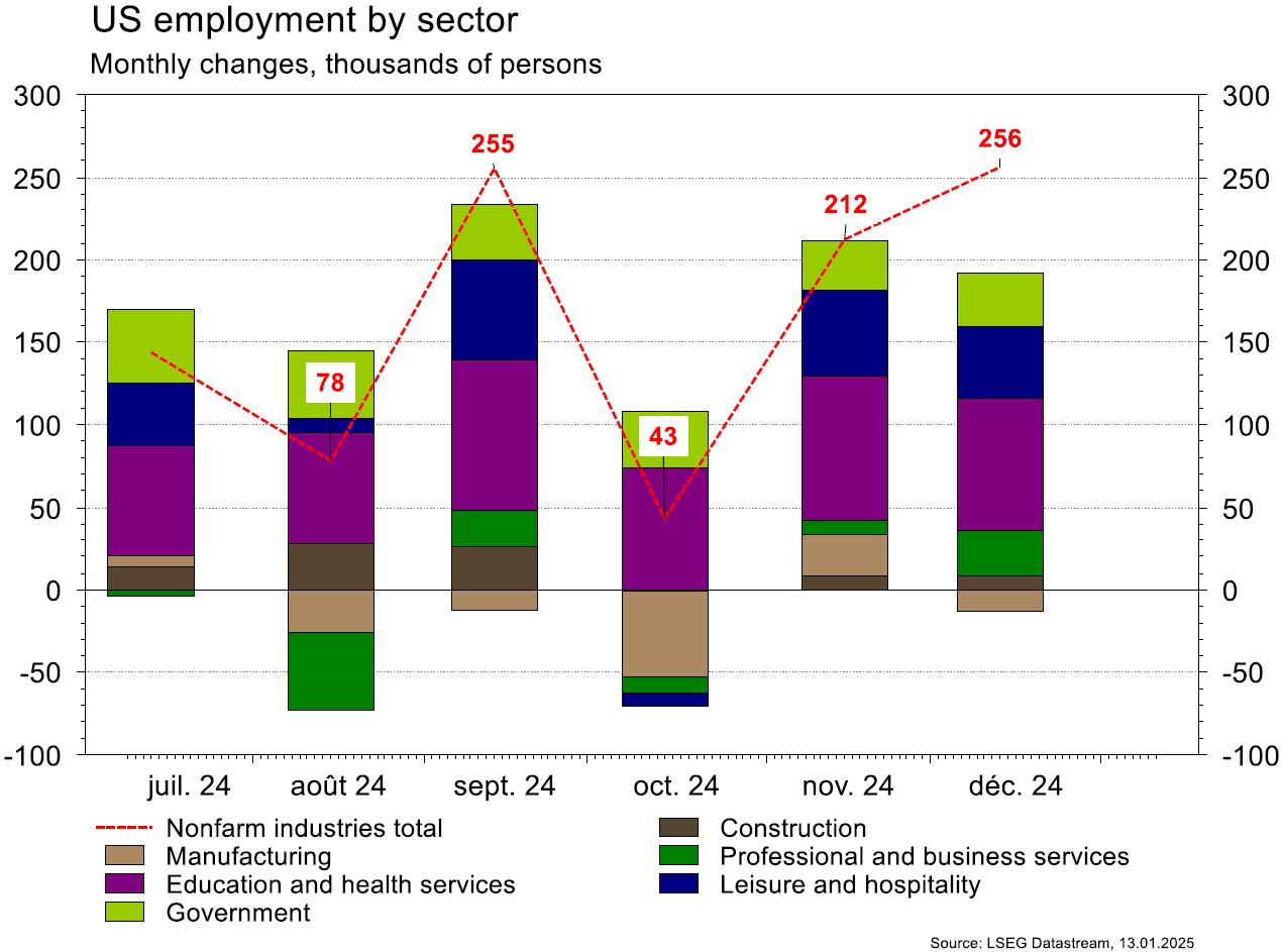 The statistics published in the United States were reassuring. The ISM services index rose more than expected in December (from 52.1 to 54.1 vs. 53.5 est.) and job creation in the same month was also higher than expected (+256,000 vs. 165,000 est.). In the eurozone, the acceleration in price growth in December, from 2.2% to 2.4% y/y, came as no surprise. The EC confidence indices disappointed in December in industry (from -11.4 to -14.1 vs. -11.6 est.) and economy (from 95.6 to 93.7 vs. 95.6 est.) but not in services (from 5.3 to 5.9 vs. 5.7 est.). In China, consumer prices (+0.1% y/y) and producer prices (-2.3% y/y) remain weak, while exports, in anticipation of future customs duties, rebound by 10.7% y/y (vs +7.5% est.).