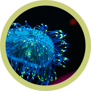 La lumière joue un rôle essentiel dans l’écologie de nombreuses espèces marines. Certains animaux la produisent naturellement (bioluminescence), tandis que d’autres ré-émettent la lumière du soleil sous d’autres couleurs (fluorescence naturelle). Les utilisations de ces phénomènes sont multiples : communiquer entre espèces, se reproduire, se protéger face aux prédateurs. Comprendre le fonctionnement de la biofluorescence chez les animaux permet de transposer ces connaissances au domaine médical et biologique. Une « fluorescence naturelle » construite dans les laboratoires peut être utilisée pour suivre l’évolution d’un virus ou d’une bactérie pendant l’infection d’un animal, ce qui pourra contribuer à la mise au point d’antiviraux ou antibiotiques. En marquant des cellules cancéreuses, on pourra suivre le processus de la métastase et mettre au point des traitements.